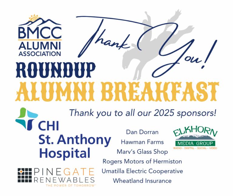 Did you know the BMCC Alumni Association offers a student scholarship? Currently, the Association awards one $1,000 scholarship per year, but our goal is to endow the scholarship to support multiple students in their academic endeavors. Giving to the Alumni Association Scholarship helps students fulfill their academic goals and pursue careers that will enable them to thrive in and give back to our Eastern Oregon community and beyond. Please consider clicking on the GIVE button at the top of the page and donating to help us support future Timberwolves!