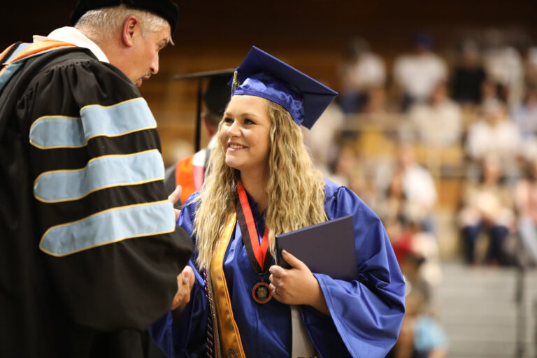 Graduate Check in: Graduates should plan to arrive at the Pendleton Convention Center no later than 5:00 p.m.  Instructions for the ceremony will begin at 5:30 p.m. so it is important that you arrive early for check-in.  Ceremony starts at 6:00 pm