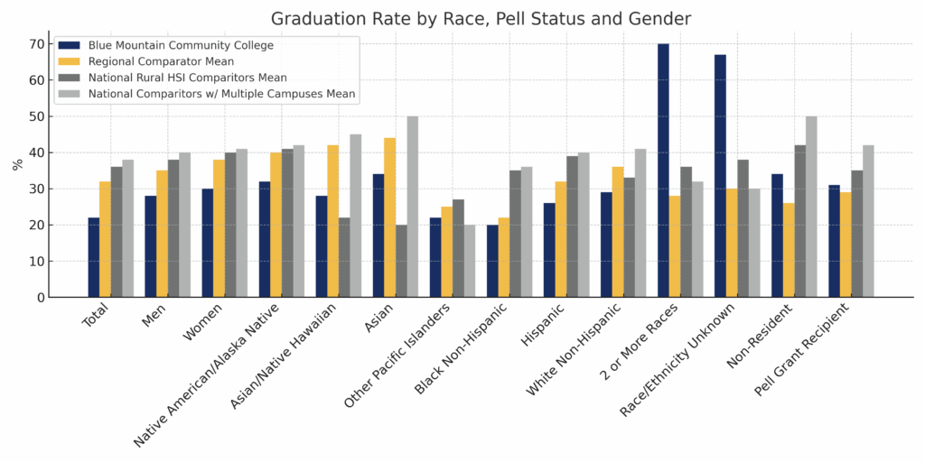 The following two charts are Student Achievement Indicators for Regional & National (HSI/MC) ComparatorsData complied by: Dr. Arnaud Prevot, Executive Director of Community EducationDated: 7/15/2025
